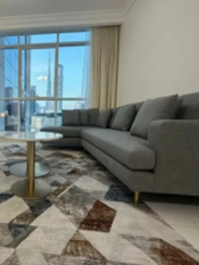 This fully furnished 1 Bedroom apartment offers stunning view of Burj Khalifa view from Living room and Bedroom. The apartment features everything from crockery to electronics and everything in between to match Dubai's standard of living. The guest have access to Kids Play area, Gym, Sauna, Steam room, Pool and covered parking. Canal being next door, Guest have access to the Canal promenade right from the building.The building is under 24/7 Security and surveillance.