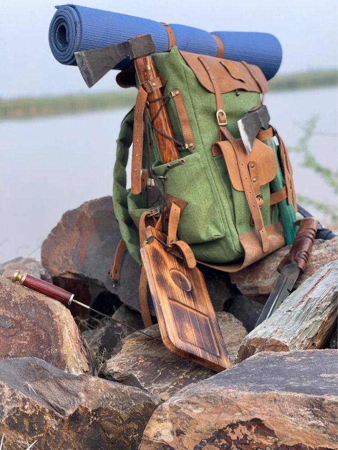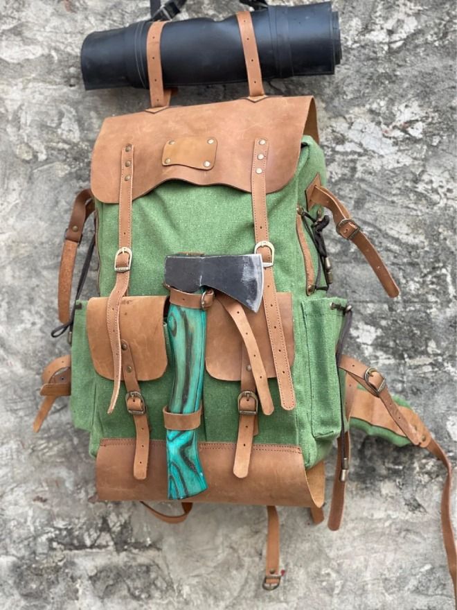 This backpack is perfect for all your camping needs, with a 50L capacity it has plenty of space for all your essentials. The pure leather material is both durable and stylish, while the handmade design adds a unique touch. The backpack features an adjustable shoulder strap and buckle closure for added comfort and security.