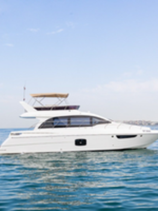 The Yacht offers a lavish and cozy ambiance, ensuring you and your guests enjoy a delightful journey amidst breathtaking vistas and iconic landmarks like the towering Burj Khalifa, the magnificent Atlantis Hotel, and the stunning Palm Jumeirah. Spanning 52 feet, this vessel graciously accommodates up to 17 guests. Its interior exudes sophistication, featuring plush seating and generous space for socializing and relaxation.