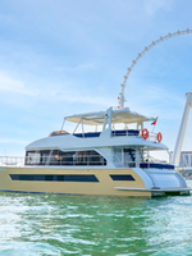 The Yacht offers a lavish and cozy ambiance, ensuring you and your guests enjoy a delightful journey amidst breathtaking vistas and iconic landmarks like the towering Burj Khalifa, the magnificent Atlantis Hotel, and the stunning Palm Jumeirah. Spanning 60 feet, this vessel graciously accommodates up to 40 guests. Its interior exudes sophistication, featuring plush seating and generous space for socializing and relaxation.