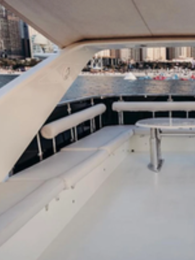 The Yacht offers a lavish and cozy ambiance, ensuring you and your guests enjoy a delightful journey amidst breathtaking vistas and iconic landmarks like the towering Burj Khalifa, the magnificent Atlantis Hotel, and the stunning Palm Jumeirah. Spanning 80 feet, this vessel graciously accommodates up to 35 guests. Its interior exudes sophistication, featuring plush seating and generous space for socializing and relaxation.
