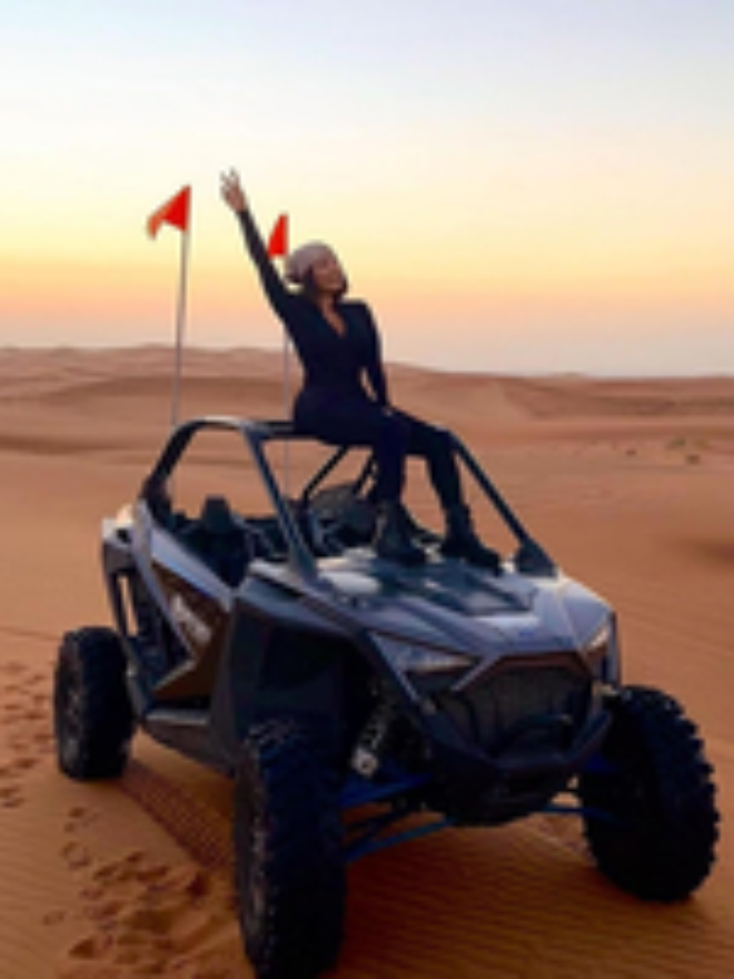 Pick up from your hotel 2:30 pm, dune bashing with driver’s SUV, sandboard in the desert dunes, sunset break for photos and videos, camel ride, small henna temporary tattoo, buffet BBQ with unlimited food and soft drinks, amazing night show: belly dance, fire show, tanura dance, drop off to your hotel at 8:30pm.