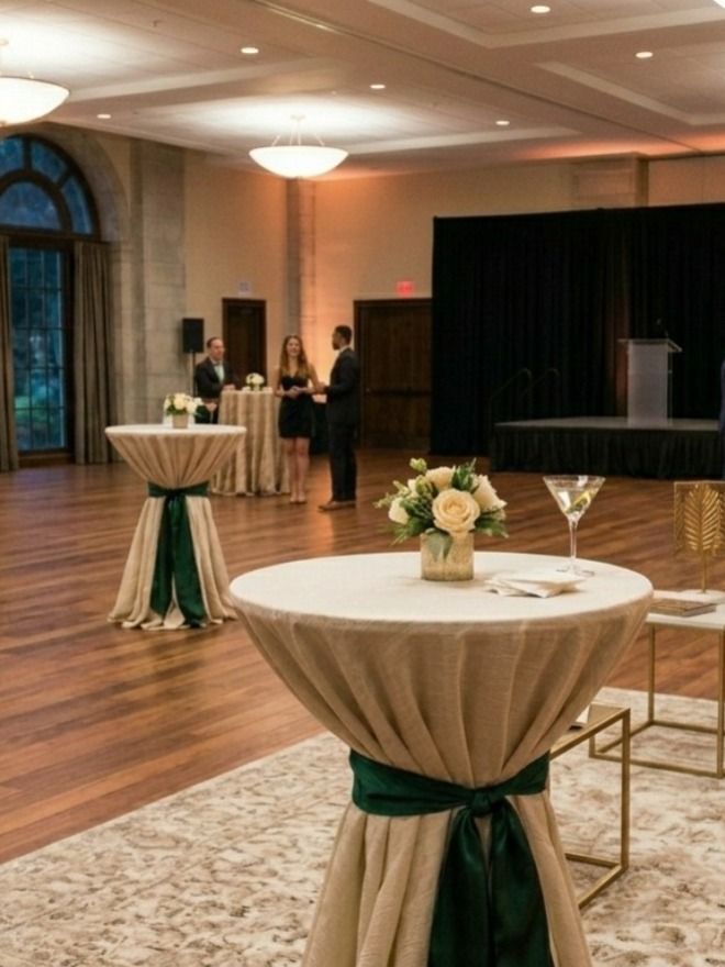 Whether you’re hosting a wedding cocktail hour, networking mixer, or gala reception, our cocktail tables with fitted linens provide the perfect balance of style and convenience. Choose from a variety of linen colors to match your event theme and create a cohesive, sophisticated look.