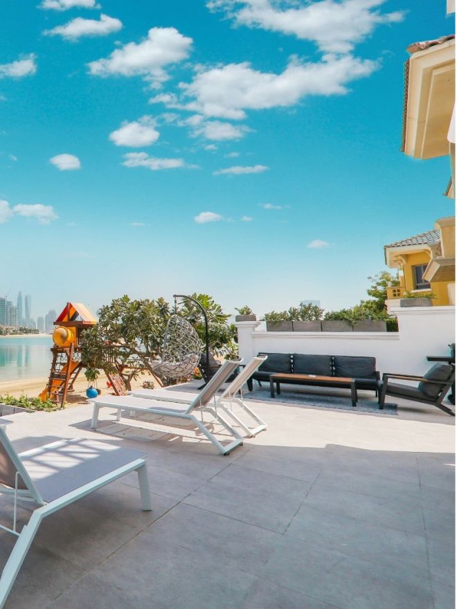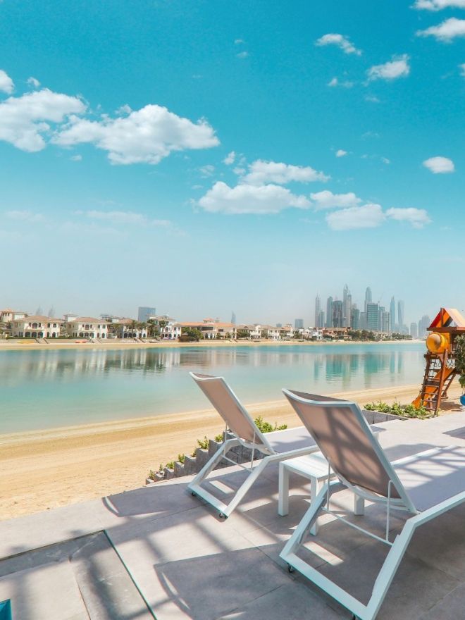 Stay in a deluxe holiday villa with private beach access in Dubai. Enjoy top-tier comfort, stunning views, and exclusive privacy perfect for your next getaway. We present a luxury villa at Palm Jumeirah, one of the most prestigious neighbourhoods in Dubai. Spacious interior and panoramic windows create a comfortable space. The villa is equipped with its own beach and swimming pool. An ideal place for a holiday in the heart of the city.
