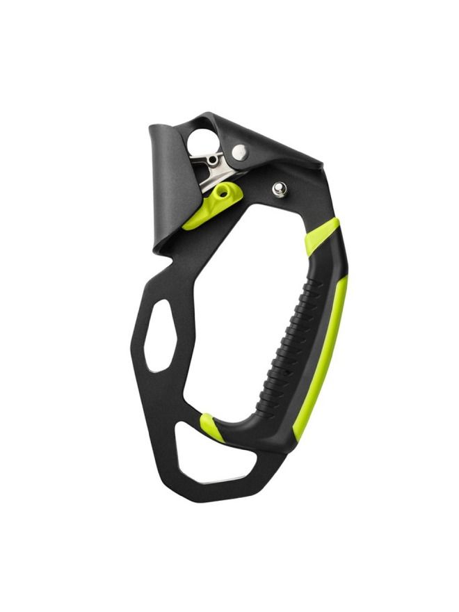 The upper part of the ascender can be grasped with the other hand for two-handed ascents
