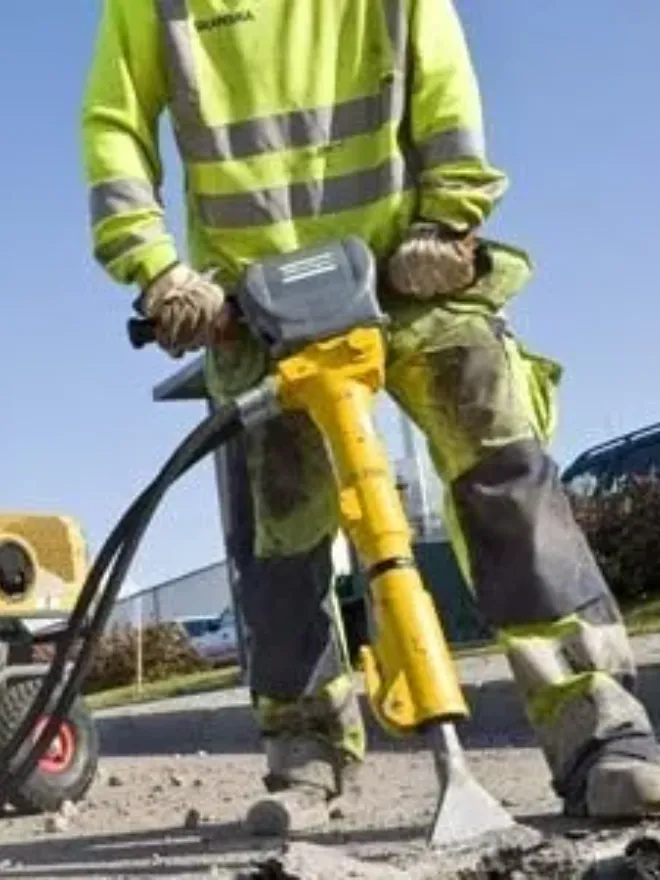 An hydraulic jack hammer with a power pack is a class leading whatever the material it would give the same result as compared to a conventional pneumatic jack hammer with screw air compressor with same power output,portability,reliability and cost saving.