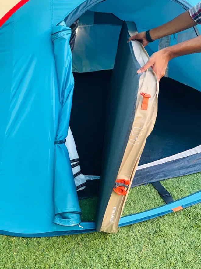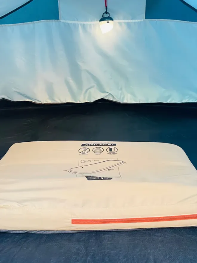 Rent this ultra-thick, self-inflating mattress for a cozy, single-person camping experience. Measuring 70 cm wide, it’s perfect for solo campers and can easily be paired with a second mattress to accommodate two people. Designed for comfort and convenience, it inflates precisely and deflates quickly with a double valve system, making setup and packing a breeze.s