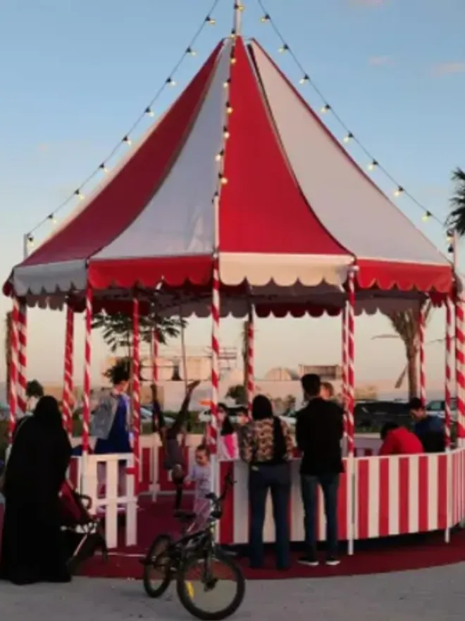 - Inside the tent: Aerial Trapeze؍ Walking Globe؍ Tightware؍ Rola-Bola؍ Mini-Stilts؍ Juggling Props