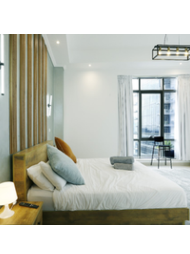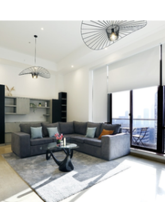 Floor-to-Ceiling Windows – Flooding the space with natural light and breathtaking city views.